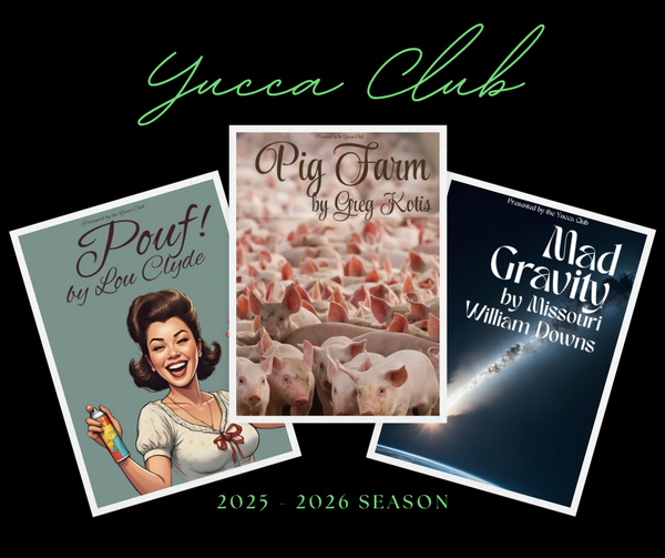 Welcome to the 2025-26 season at the Yucca Club! This season is bigger and better than ever before. We are bringing three Yucca productions to the stage this season. Pig Farm this October; Mad Gravity in January; and Pouf! in April. So what is included in season tickets? To start, you get tickets to four performances. Yes, FOUR! That means that you can see your favorite show twice or you can share the joyfulness of the Yucca Club with a friend. We don’t stop there. At the Yucca Club, we know that patrons need to wet their whistle to keep the theater filled with laughter so that is why your first beverage is half off at all Laugh Therapy and Yucca Productions. And there is still more. You will receive coupon codes to get 25% off on all Laugh Therapy comedy shows. And lastly, all season ticket holders will get access to secure their tickets one week before the general public so season ticket patrons are sure to see the performances on the dates that they choose. You won’t want to miss out on being a season ticket holder.